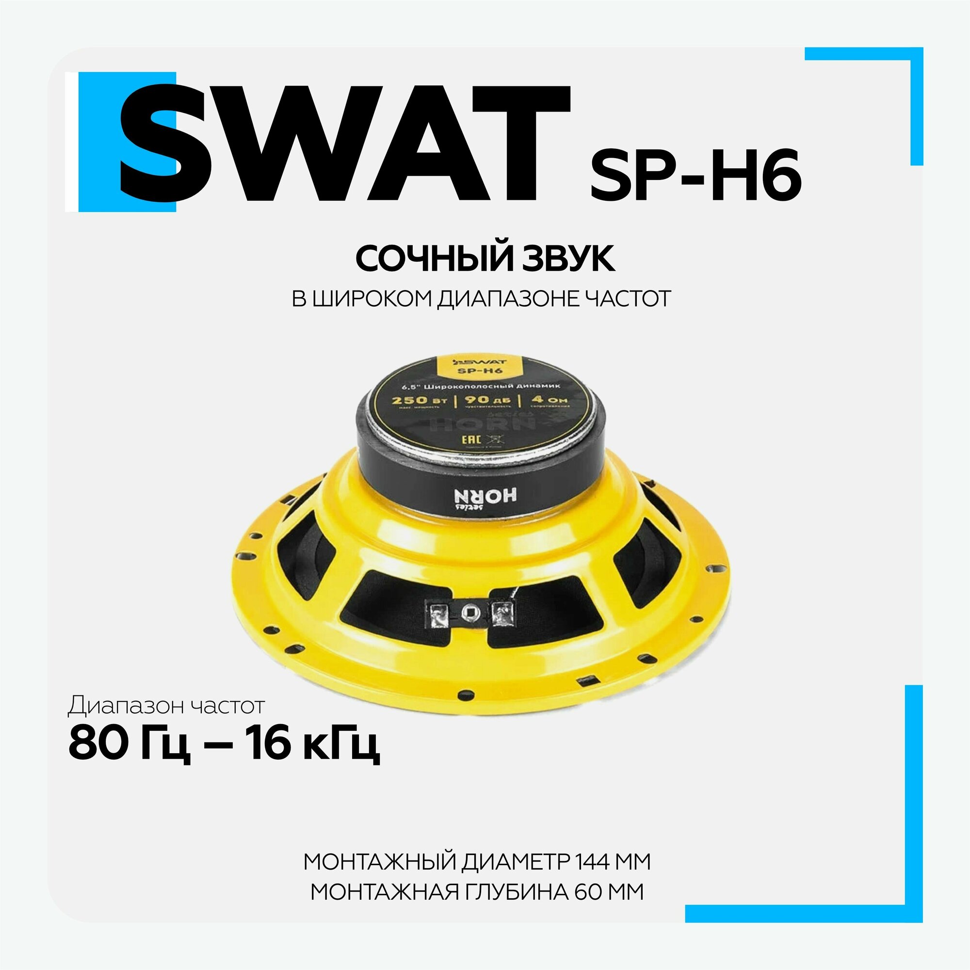 Колонки автомобильные SWAT Horn SP-H6, 16.5 см (6 1/2 дюйм.), комплект 2 шт. [swat sp-h6]