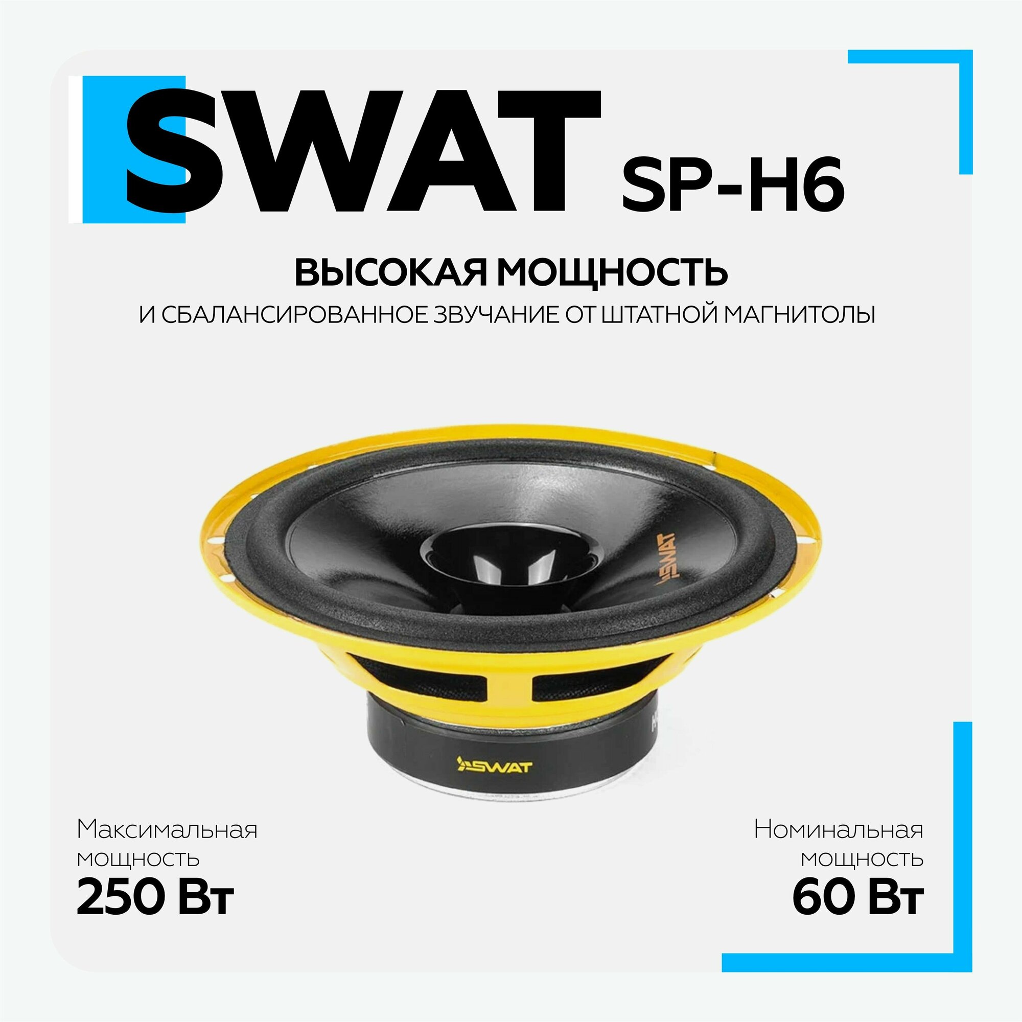 Акустика автомобильная Swat Sp-h6/ 6"" (16 см.), широкополосная акустика 60/250 Вт./ SP-H6