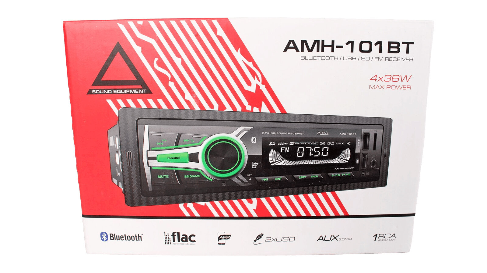 Автомагнитола Aura AMH-101BT USB-ресивер, USB/SD/MMC-ресивер, зеленая подсветка, блютуз