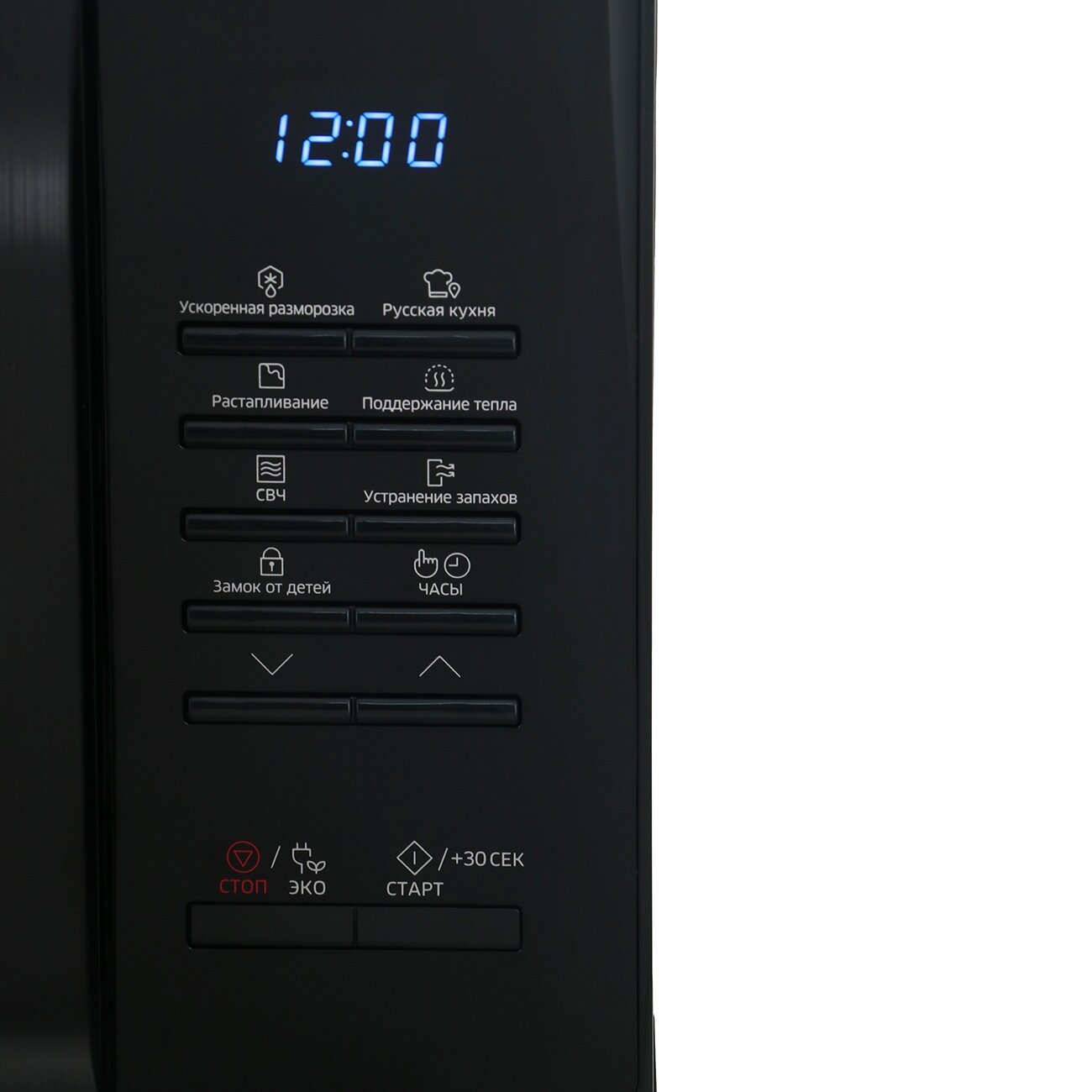 Кнопки механические, мне они даже больше нравятся чем сенсорные! Ручка дверцы удобная . Греет так же хорошо как и моя предыдущая микроволновка Самсунг ! Дисплей с часиками легко отключить, если он Вам не нужен нажав на кнопку Стоп! |