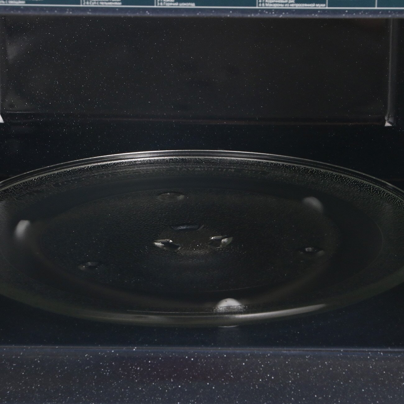 Почти полностью непрозрачное стекло, за которым ничего не видно. Достаточно маленькая мощность по сравнению с такой же микроволновой печью LG, купленной вдвое дешевле - поставили стакан воды (~200ml) на 2 минуты на максимальную мощность - согрелся, но до кипения далеко. |