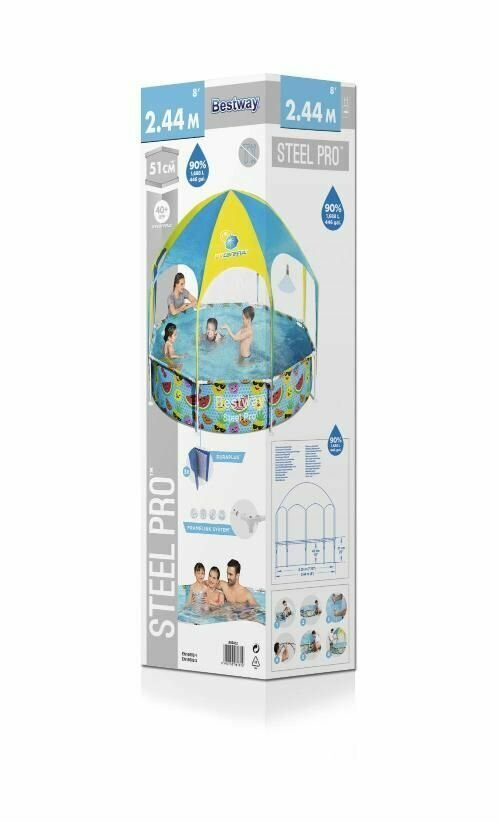 Бассейн каркасный Bestway Steel Pro с навесом 244х51 см, от 2 лет