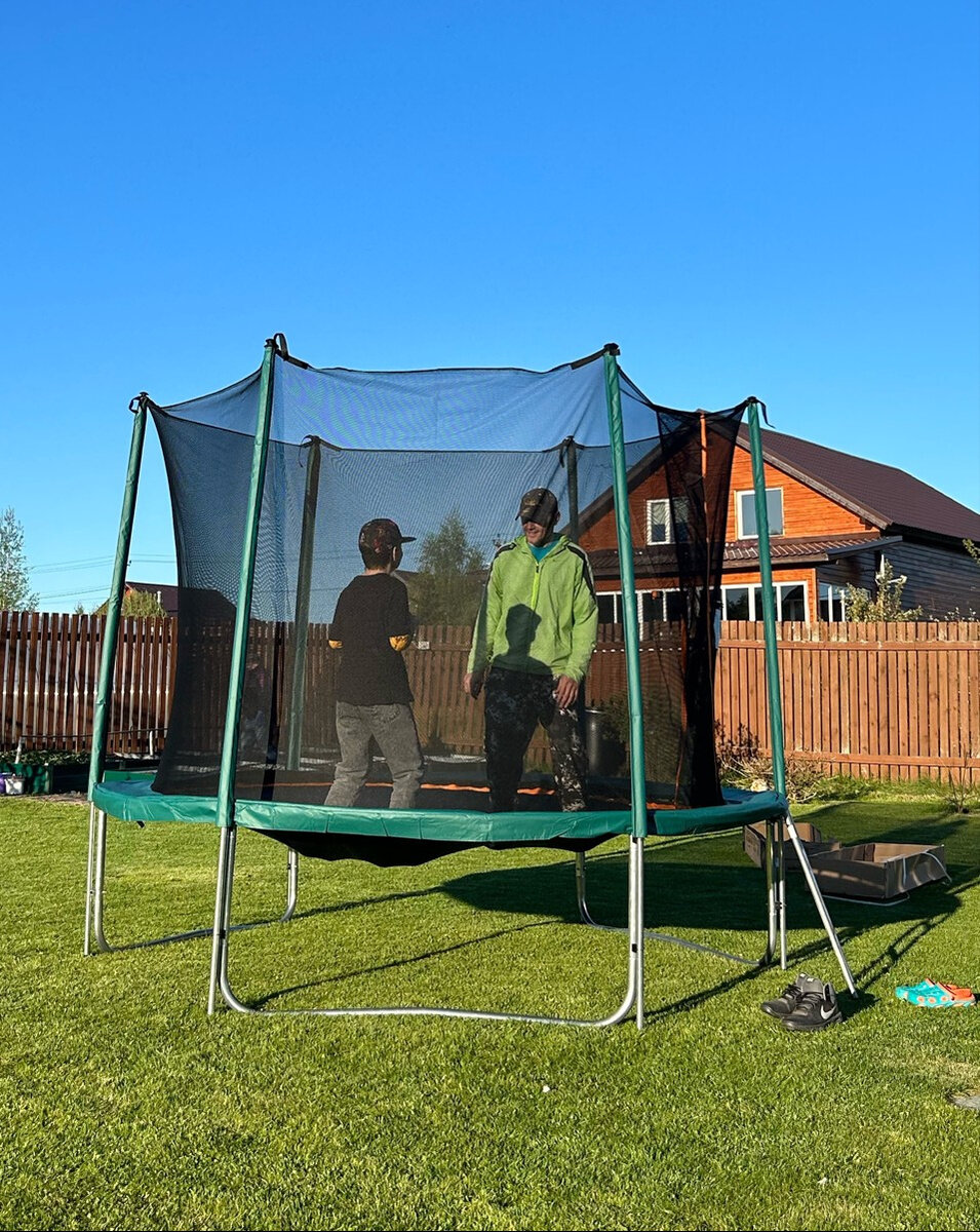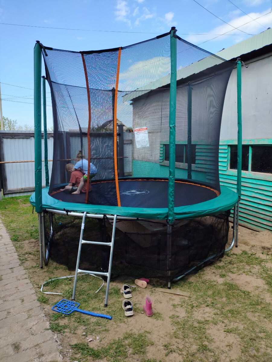| Отзыв: | Испытания нагрузками наш батут прошел. Прыгали постоянно и дети, и дяди, и тети. Притом иногда совсем не маленькие. Использовали его прям жестко, поэтому удивился даже что к кончу сезона никаких видимых повреждений ни на деталях, ни на материале нет. Даже лестница и баскетбольный щит остались целы.