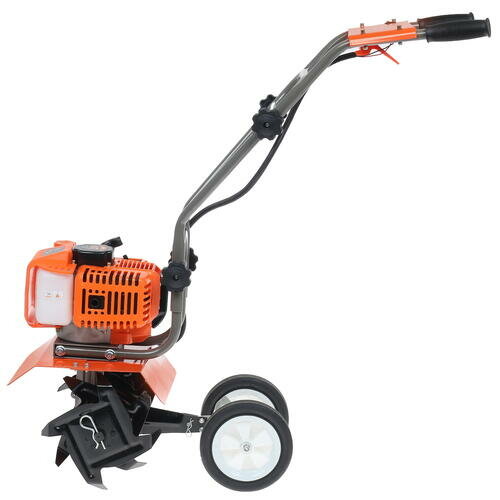 | Плюсы: | Удобно работать, и нетрудно перевозить. Для небольших участков. |