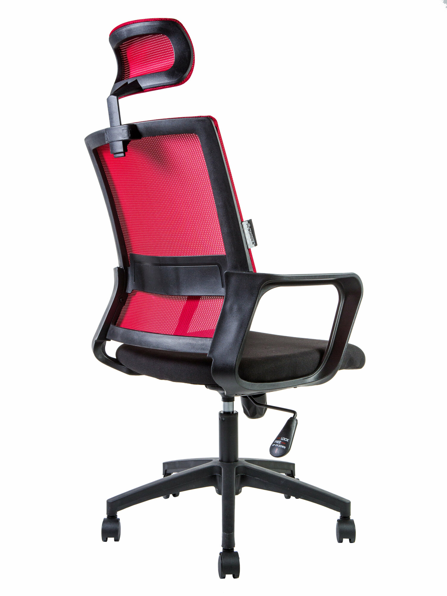 Кресло офисное Norden Бит / черный пластик / красная сетка / черная ткань