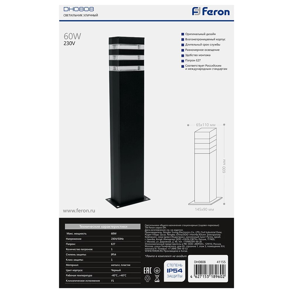 Feron DH0808 Светильник садово-парковый, серии «Сеул», (НТУ) 60W, E27, 230V, IP54, прямоугольник 41155