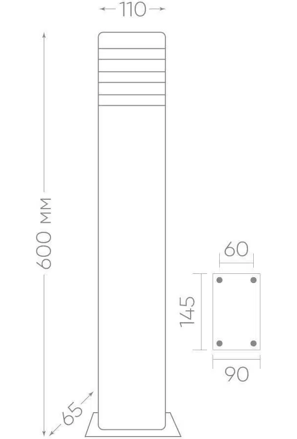 Наземный низкий светильник Feron 41155 DH0806 110*65*600мм черный