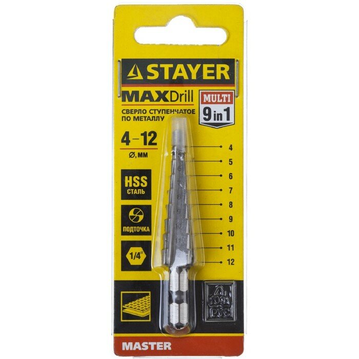 Сверло по металлу STAYER hss 4-12 мм, 9 ступеней