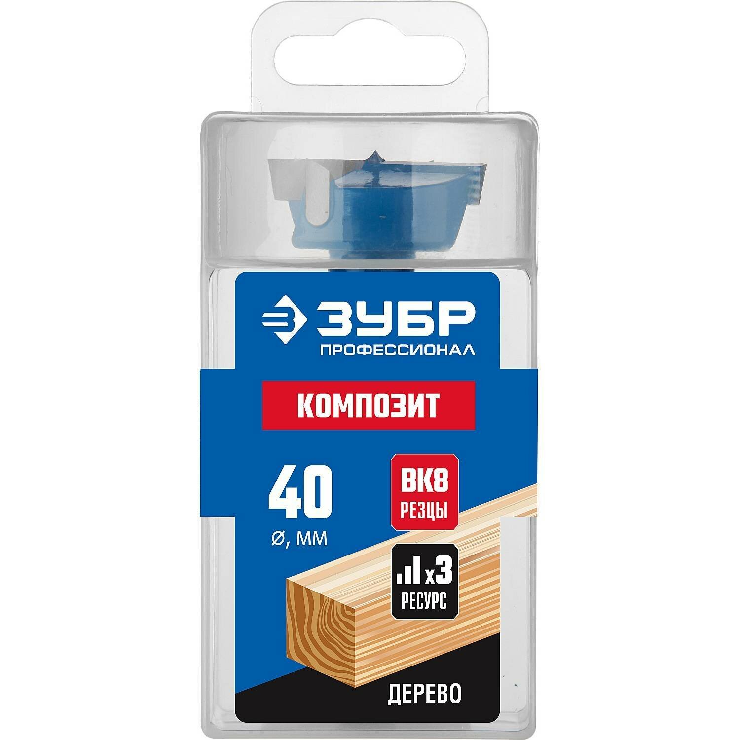 Сверло Форстнера по дереву Зубр Композит 40x90мм, композитное, твердосплавные резцы, 29945-40_z01