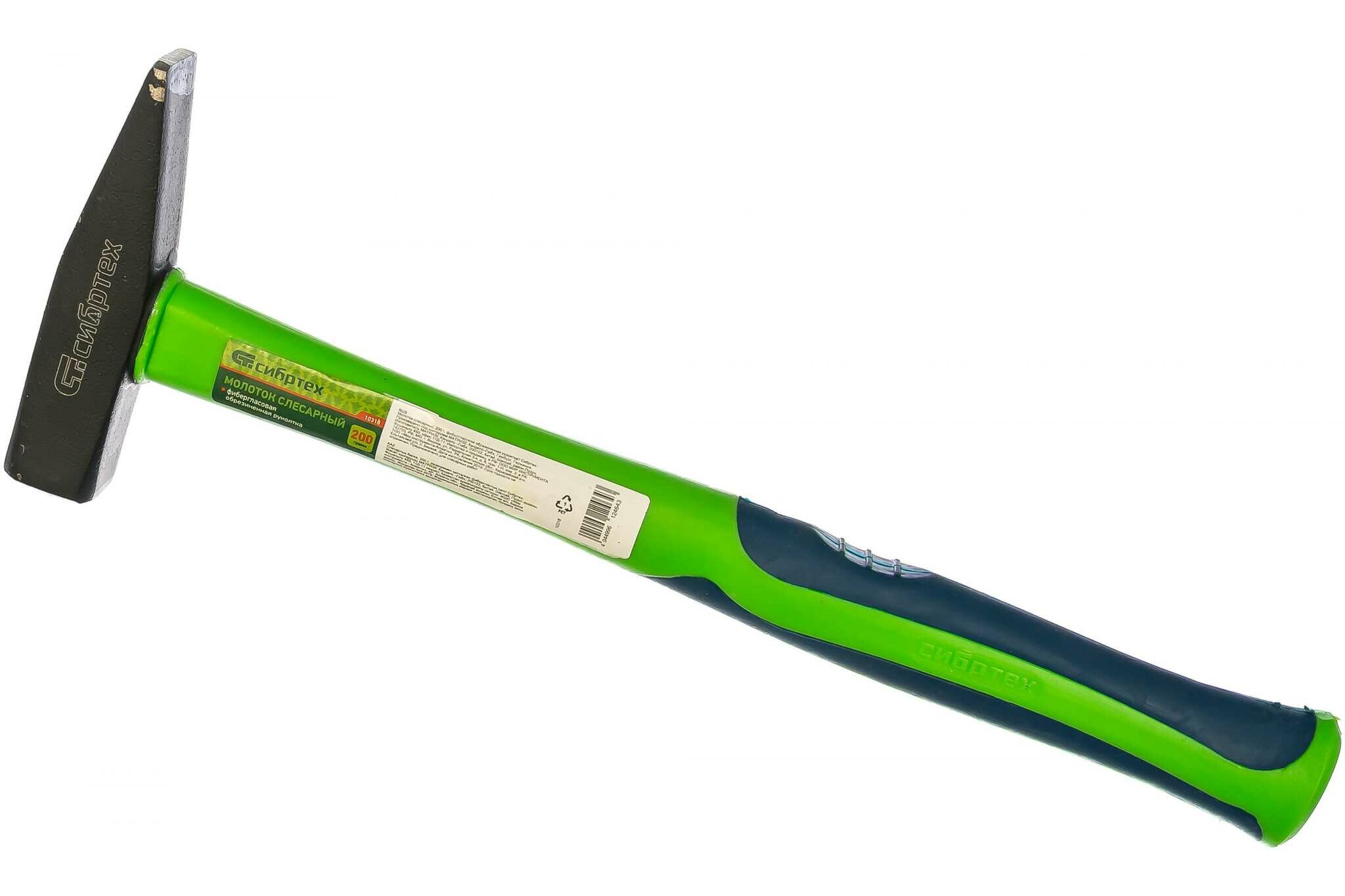 Молоток слесарный Сибртех 200 г, фибергласовая обрезиненная рукоятка 10318