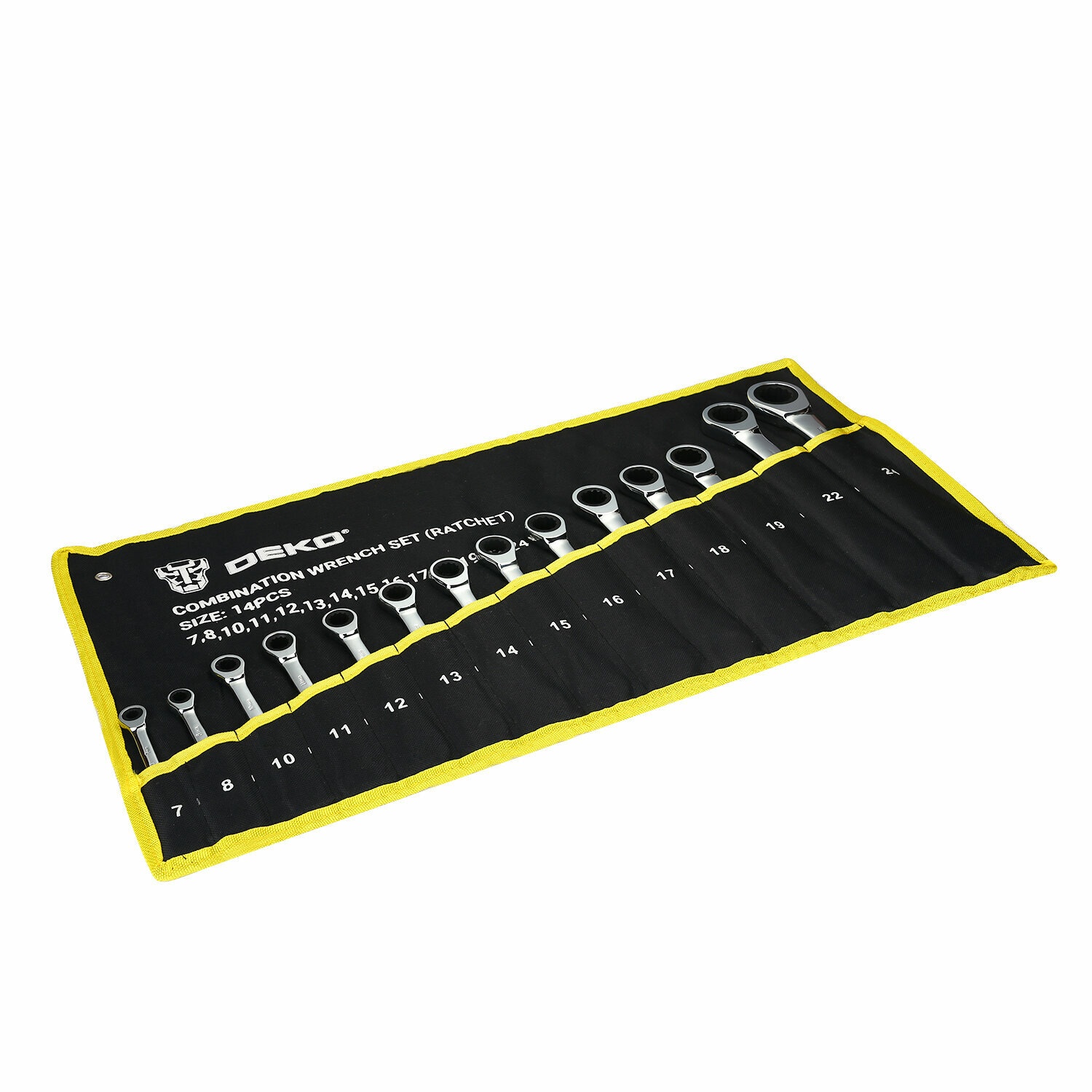 Ключи комбинированные трещоточные Deko DKHT14, 7 - 24 мм, набор 14 шт
