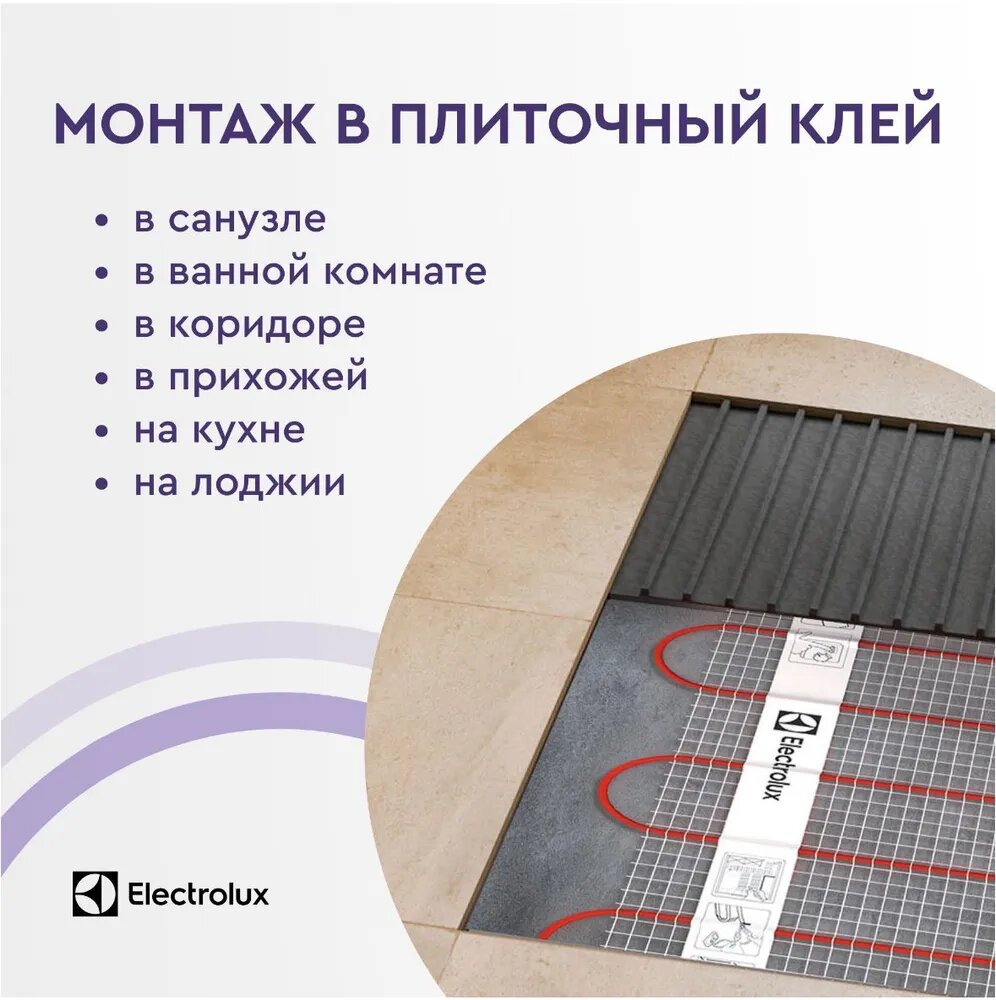 Мат нагревательный ELECTROLUX EEM 2-150-10 комплект теплого пола, монтаж в плиточный клей/стяжку, 10 кв. м, 1500 Вт