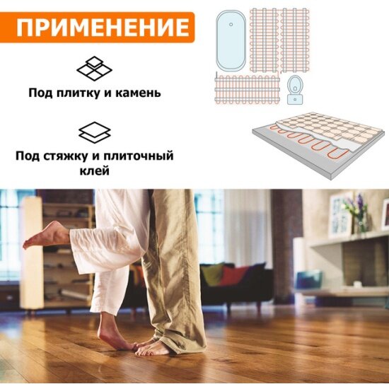 Теплый пол (нагревательный МАТ), площадь 1,5 м2 (0,5 х 3,0 метра), 240Вт