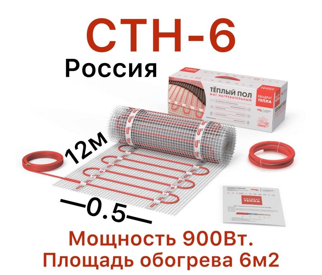 Купить Теплый пол Мат "Квадрат тепла" СТН КМ-900-6,0 .