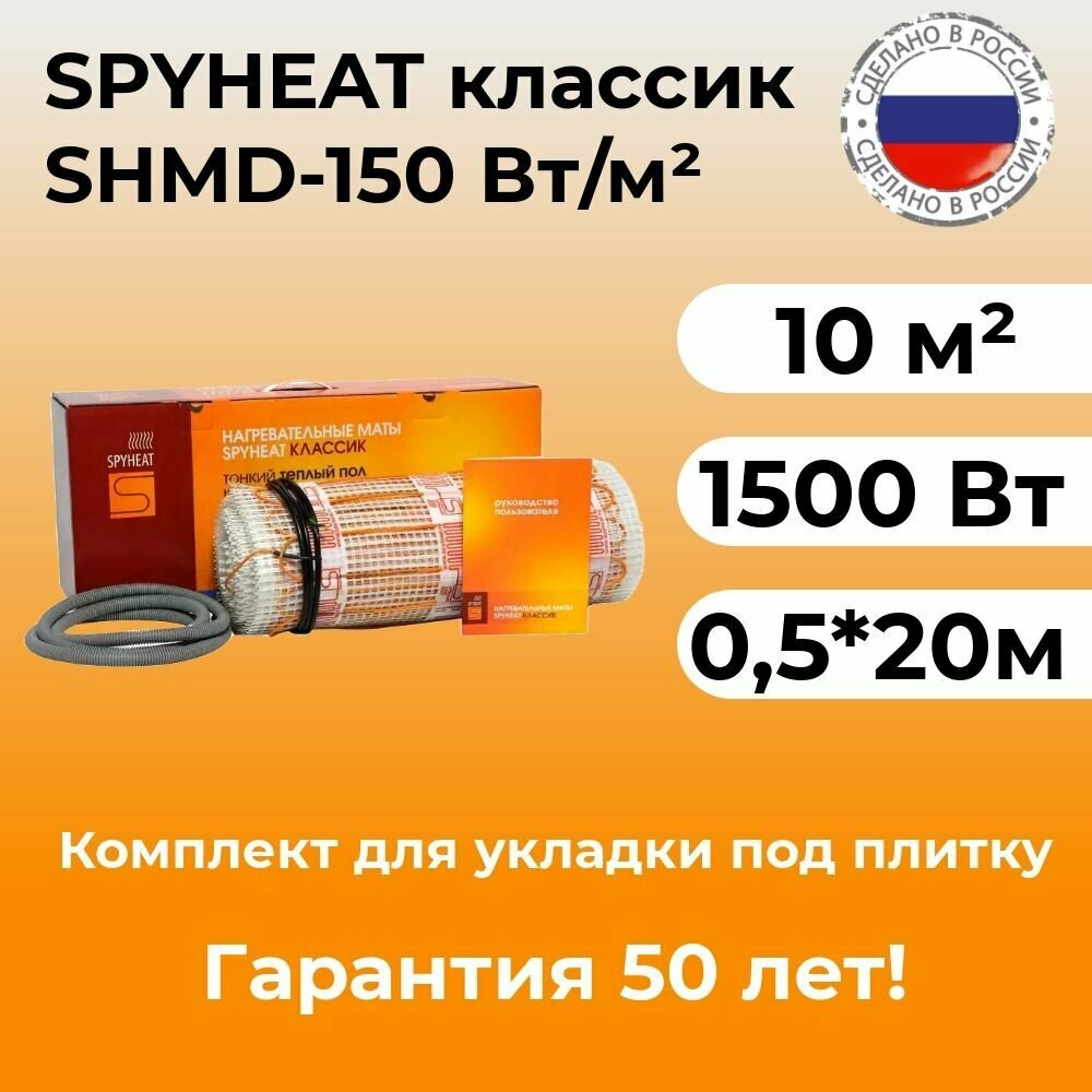 Мат тонкого теплого пола 10.0кв.м SPYHEAT Классик SHMD-8-1500Вт, мощность мата 150 Вт