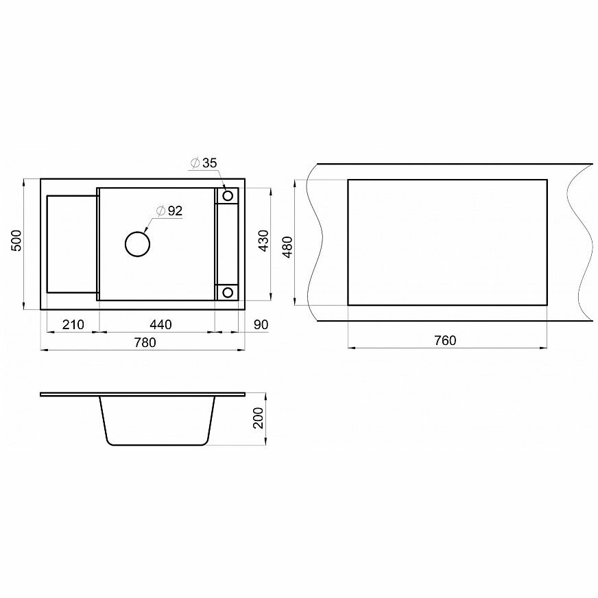 Кухонная мойка GRANULA 7806, сланец, кварц