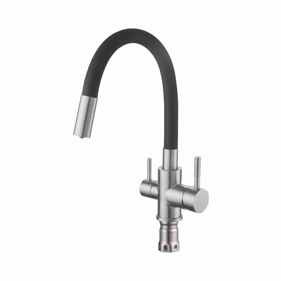 Смеситель для кухни с гибким изливом и подключением фильтра Shevanik S568B, сатин/черный интересное: