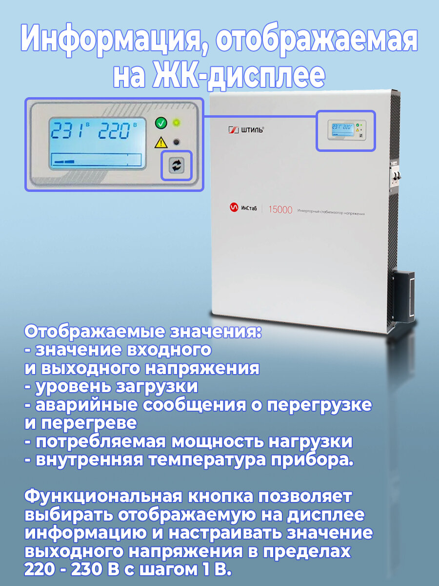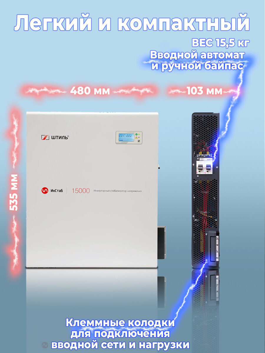 Однофазный стабилизатор Штиль ИнСтаб IS20000 (220 В) (20000 ВА , инверторный) для котла, дома, дачи.
