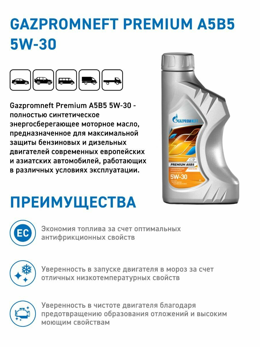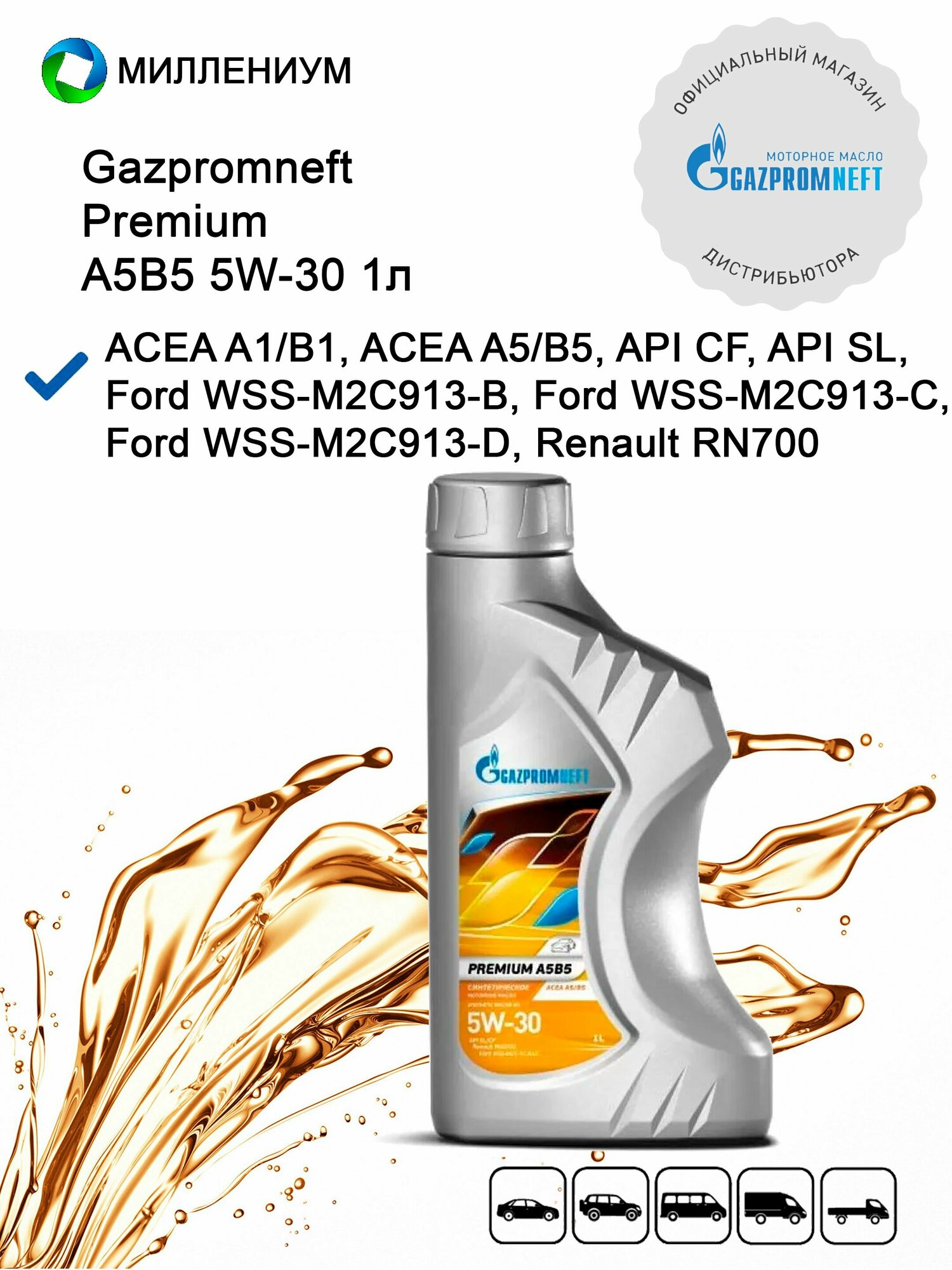Синтетическое моторное масло Газпромнефть Premium A5B5 5W-30, 1 л, 1 кг, 1 шт
