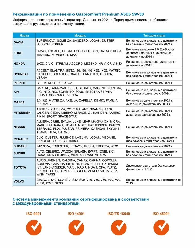 | Отзыв: | Первый раз заливал масло от Газпрома. Посмотрю, что будет через 10 тысяч километров |