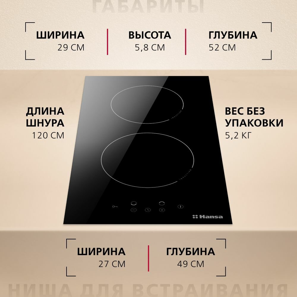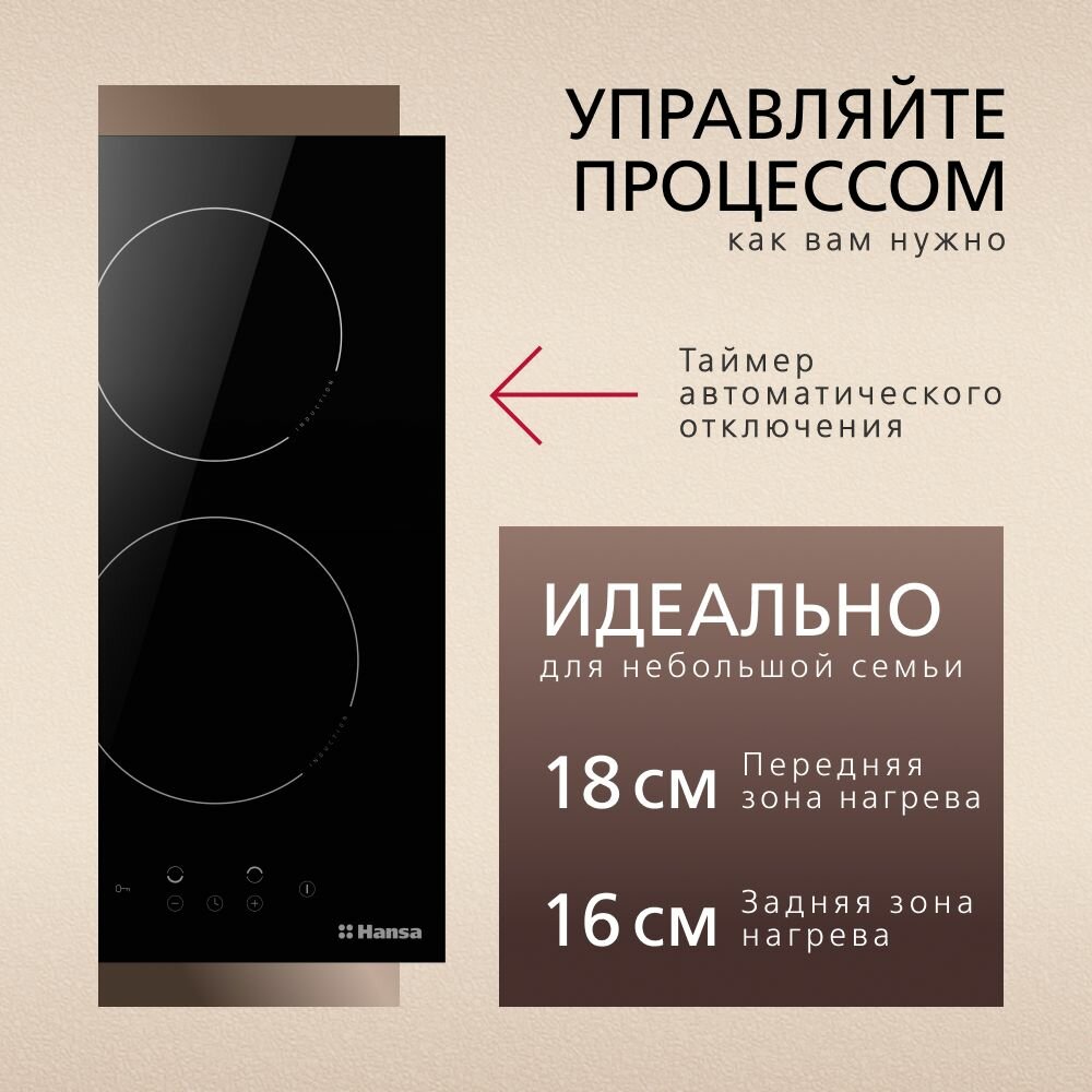 Домино HANSA/ Индукционная варочная поверхность HANSA BHI36200 30 см, функция обнаружения посуды, блокировка от детей, таймер,индикация остаточного тепла, цвет черный