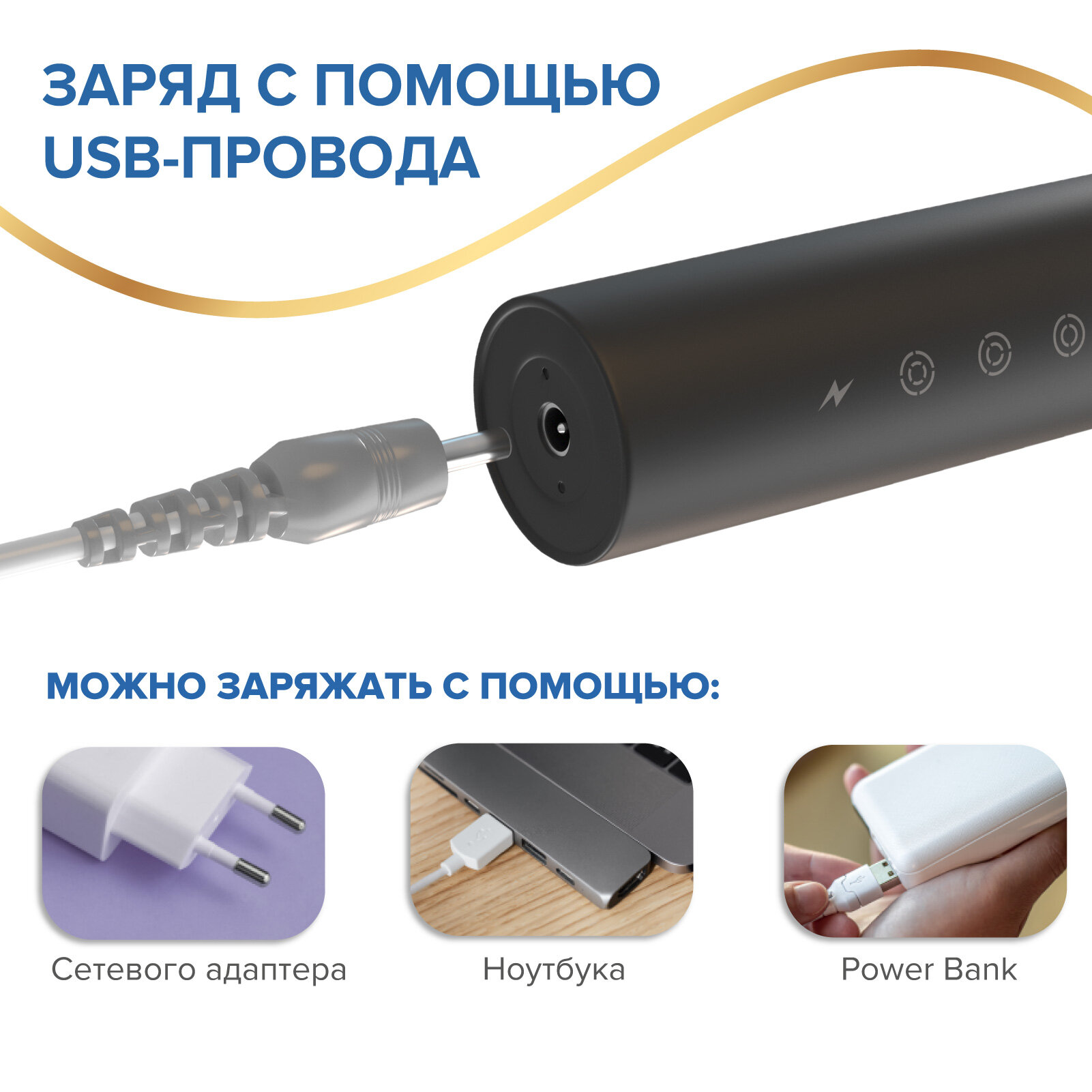 | Подробная комплектация | зубная щетка, 2 сменные насадки, USB-кабель, инструкция на упаковке |