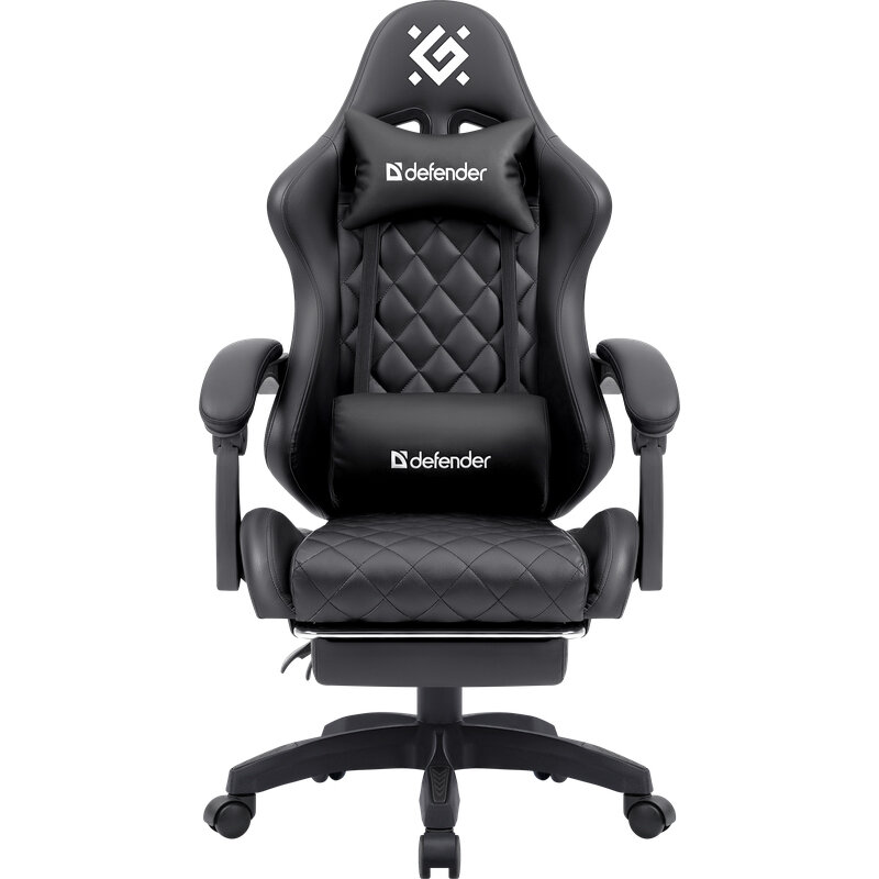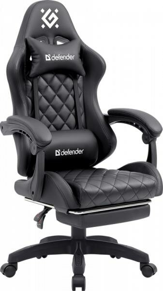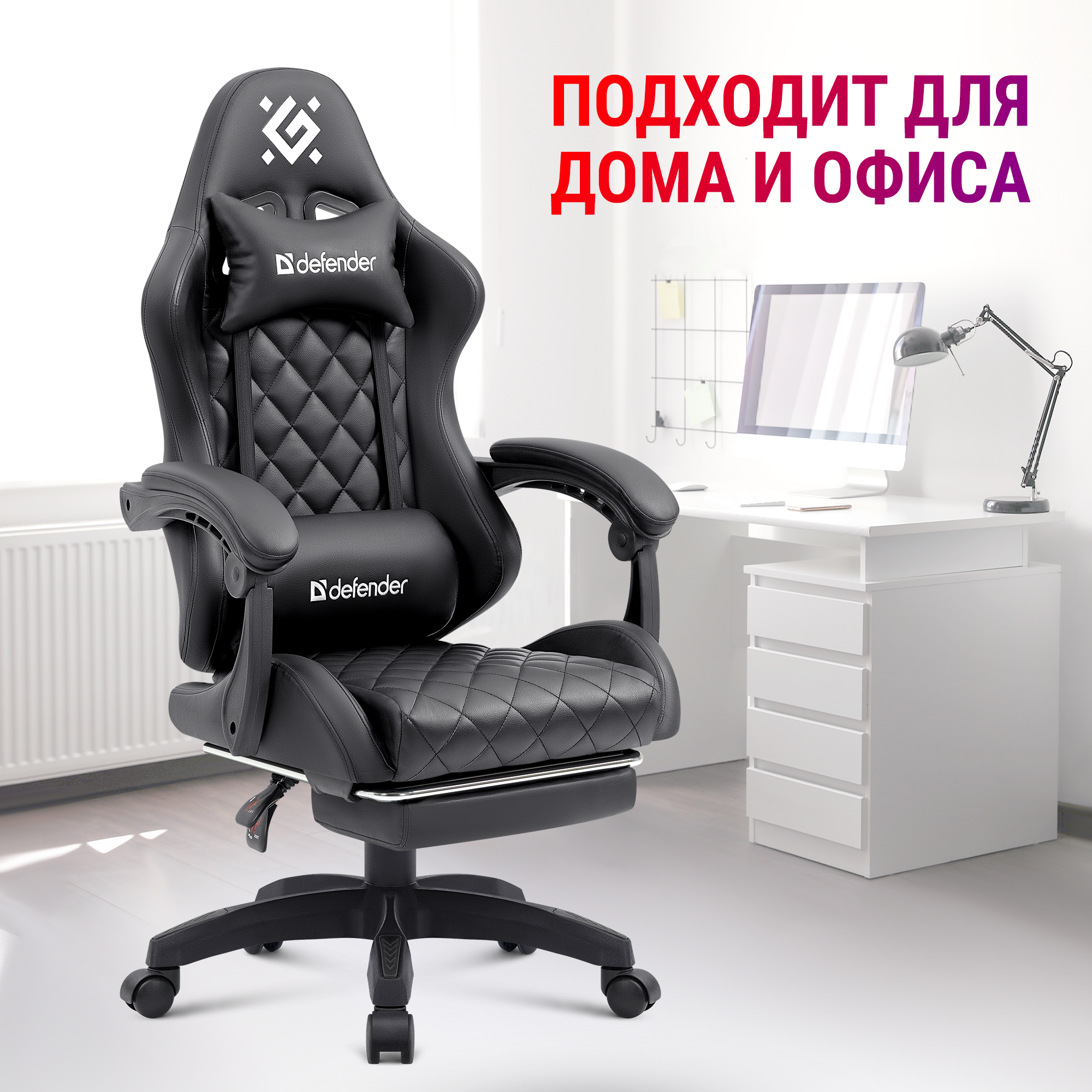 Компьютерное игровое кресло Defender Rock из эко-кожи с регулировкой высоты и подставкой для ног, на металлической раме, 2 подушки.