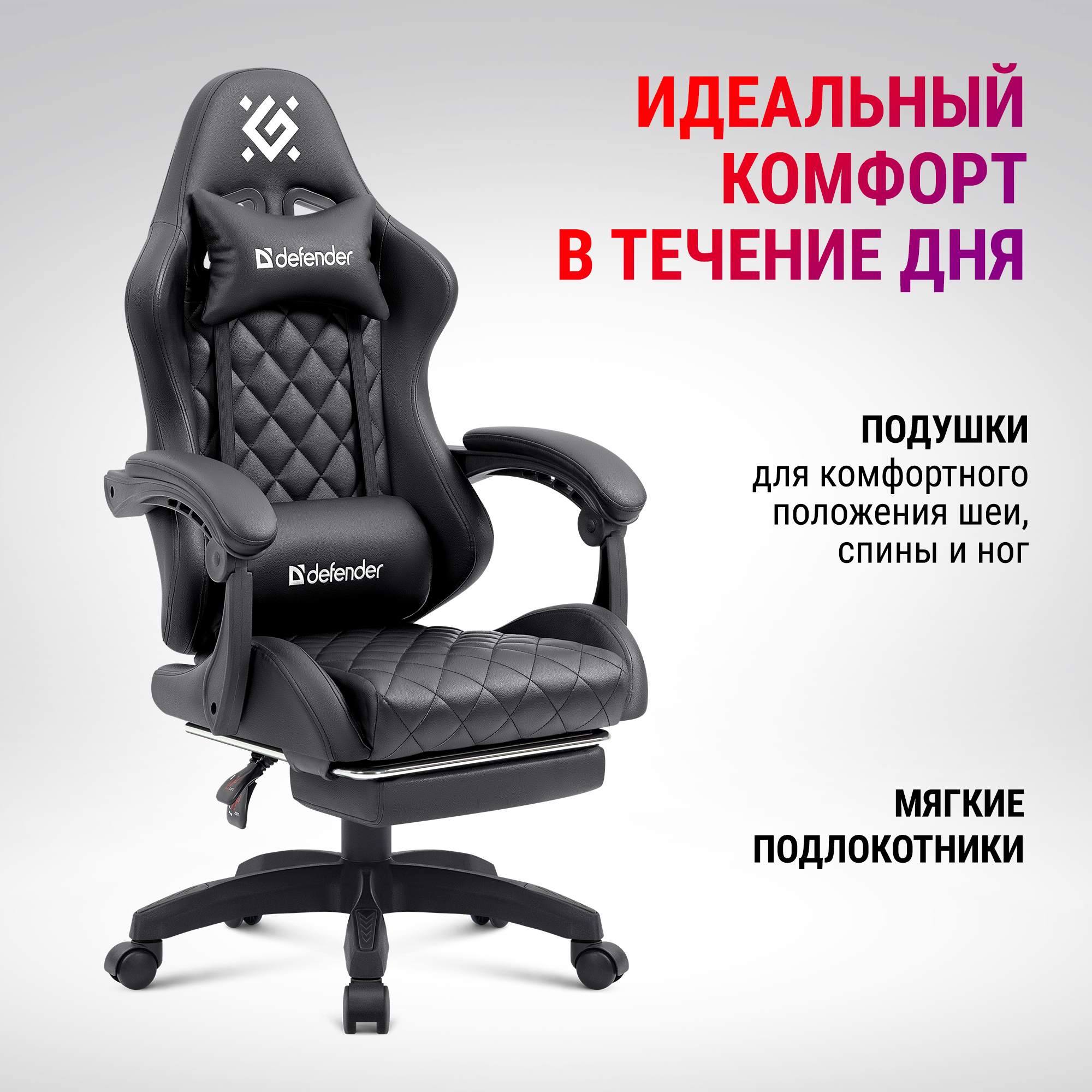 Кресло компьютерное / игровое кресло Defender Azure, чёрное, 2 подушки, с подставкой для ног
