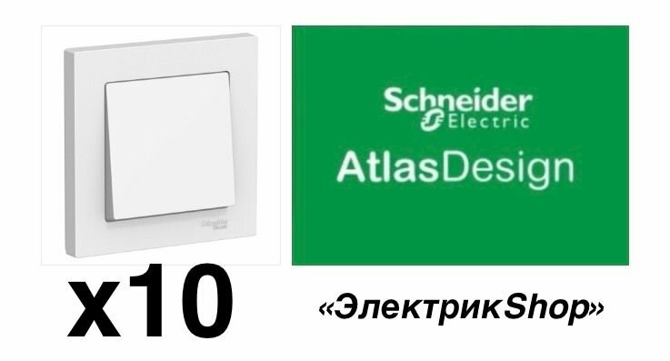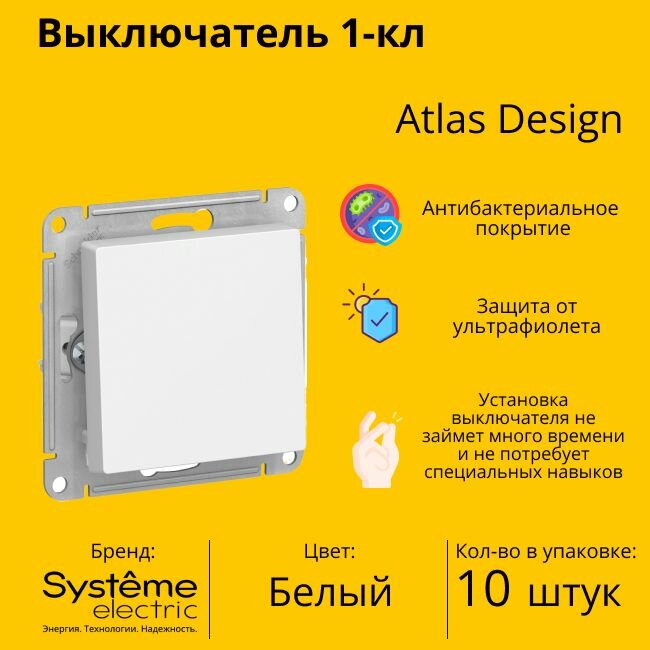 Выключатель Systeme Electric / Систем Электрик AtlasDesign, 10АХ схема 1, белый одноклавишный, ATN000111 / переключатель