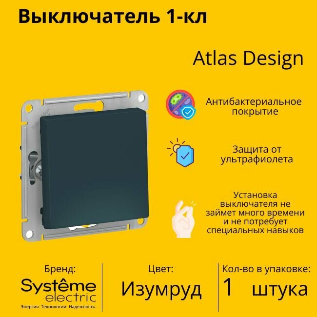 Купить Schneider AtlasDesign мех. выкл. СУ 1 кл. изумруд (пласт. осн.) ATN000811 (арт. 662646)