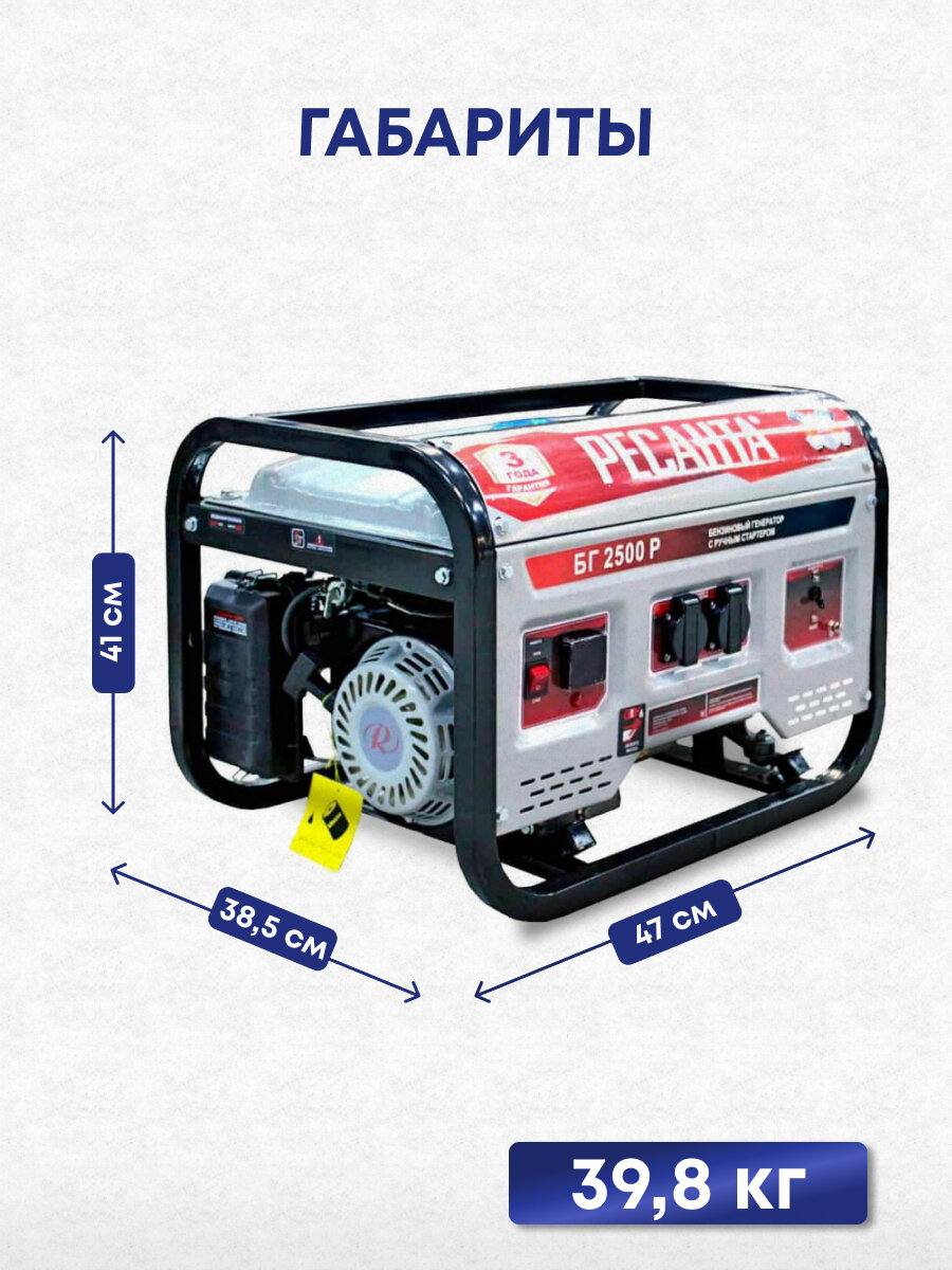 Бензиновый генератор РЕСАНТА БГ 2500 Р, 220 В, 2кВт [64/1/50]