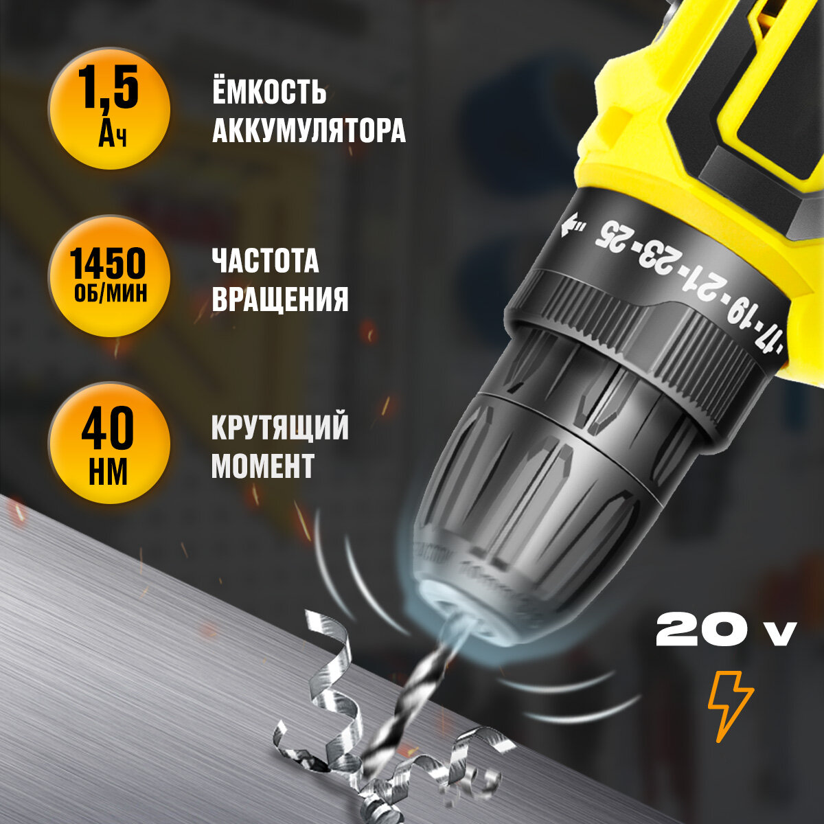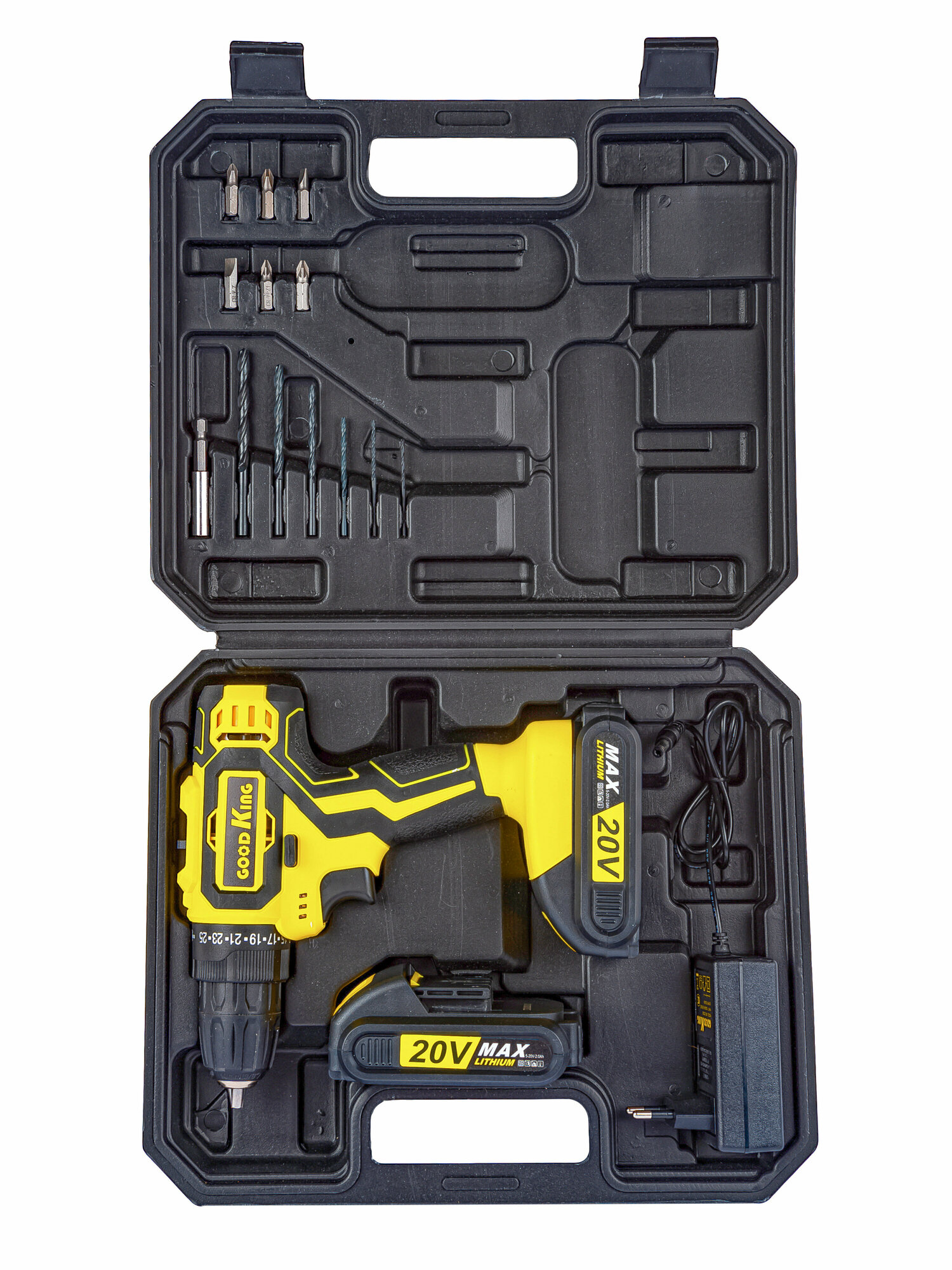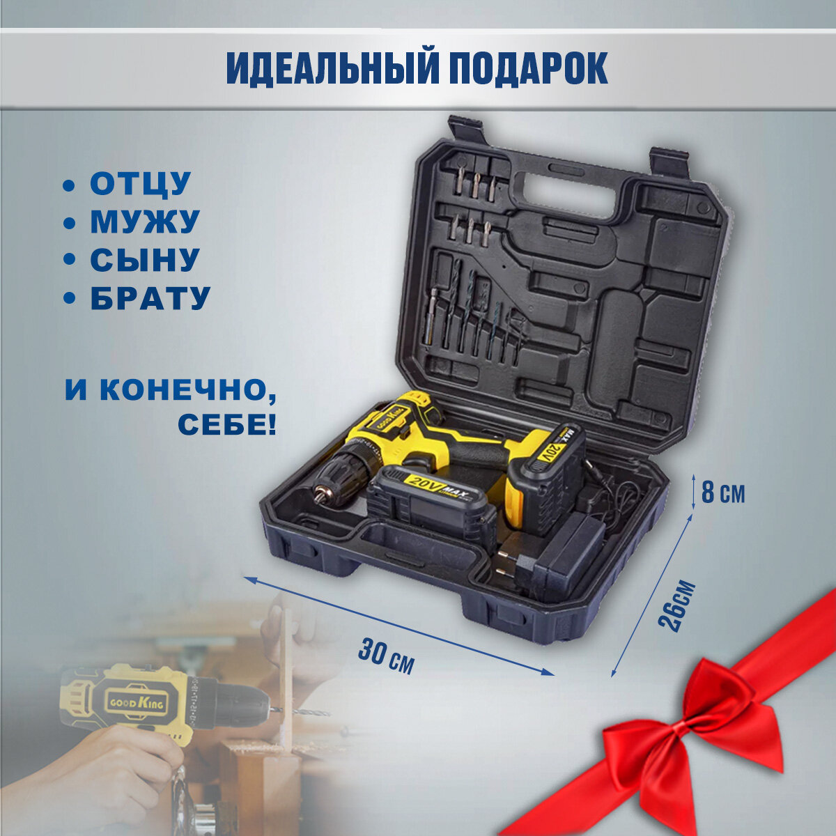 Аккумуляторная дрель-шуруповерт 2 АКБ, 20В., 30Нм, 2Ач GOODKING EC-2002013, шурик, набор инструментов, для дома, для дачи