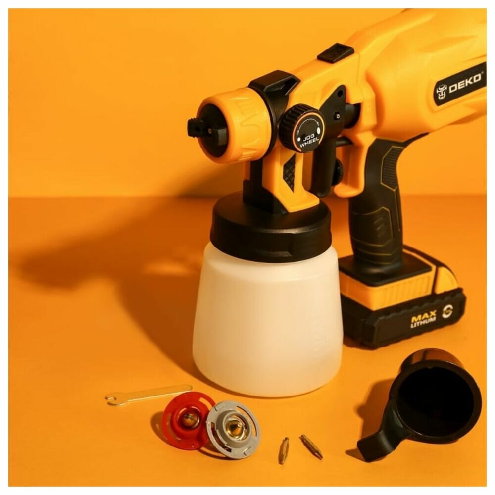 Купить Аккумуляторный краскопульт Deko DKSG20K2, 20В, 800 мл, 1*2.0Ач 063-4180