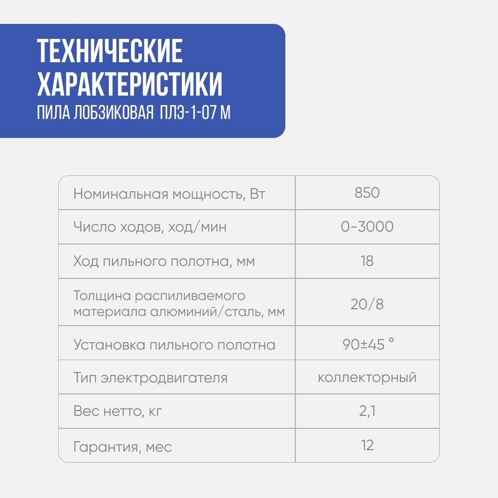 | Частота движения пилки | 3000 ходов/мин |