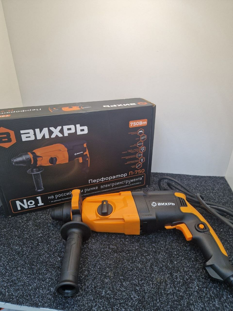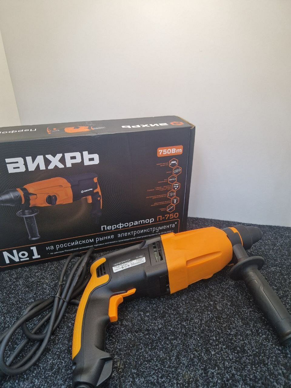 Целыми днями слушаю, как соседи со всех сторон ревут перфораторами, зависть заела. Решил себе купить недорогой - Вихрь П-750. Думал по цене только пожужжать хватит, но ошибался. Вполне нормальный инструмент. Цена снижена, потому что нет кейса. Хранить действительно неудобно. Но для домашнего использования, раз в десятилетие, силы удара и мощности более чем достаточно. Берет монолитную стену и сверлит отверстия в 2,5 см.