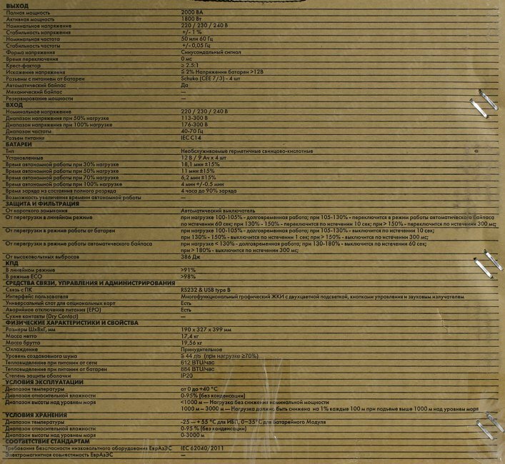 | Особенности | автоматический By-pass / звуковая сигнализация / поддержка SNMP |