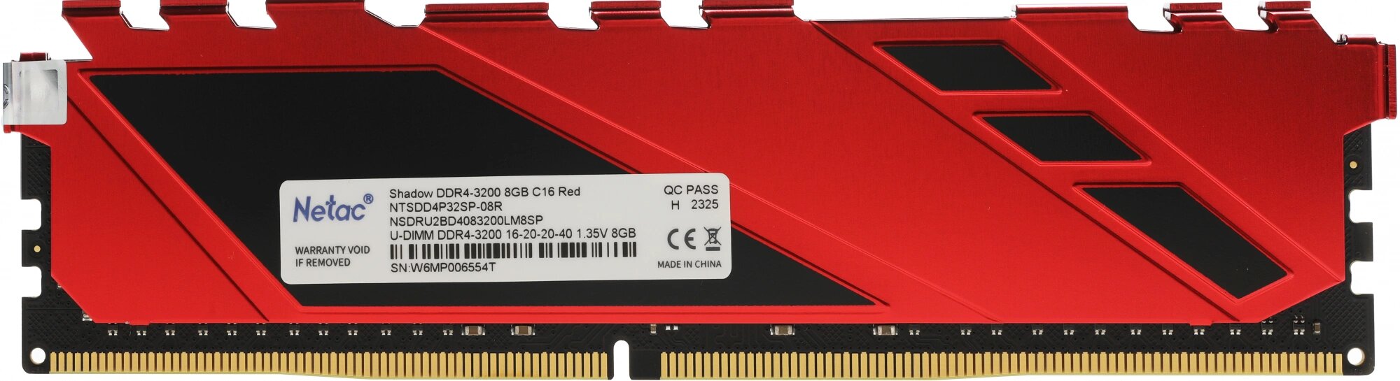DDR4 Netac Shadow 8GB 3200MHz CL16 1.35V / Ntsdd4p32sp-08r / Red / with radiator