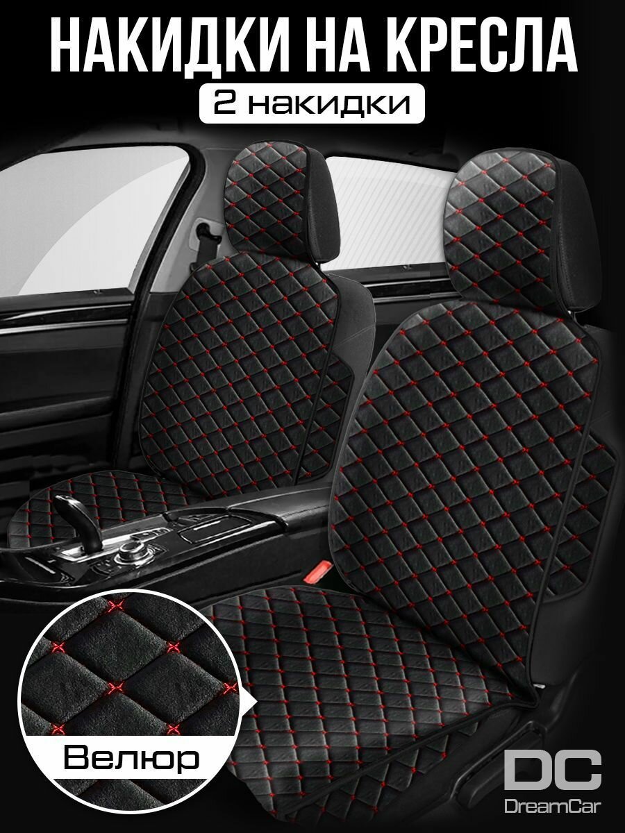 DreamCar Technology Накидки на сиденья авто, велюр черный, красная сторчка, 2шт