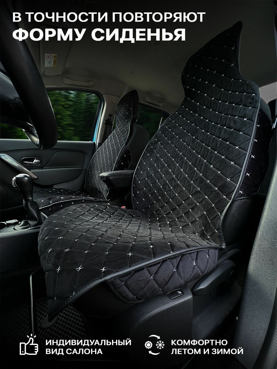 Накидки автомобильные на передние сидения велюр Цвет черный, рисунок ромб красный