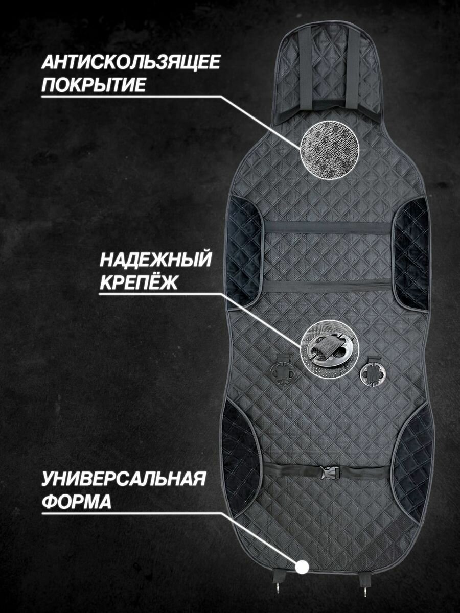 Накидки автомобильные на передние сидения велюр Цвет черный, рисунок ромб красный боковые элементы