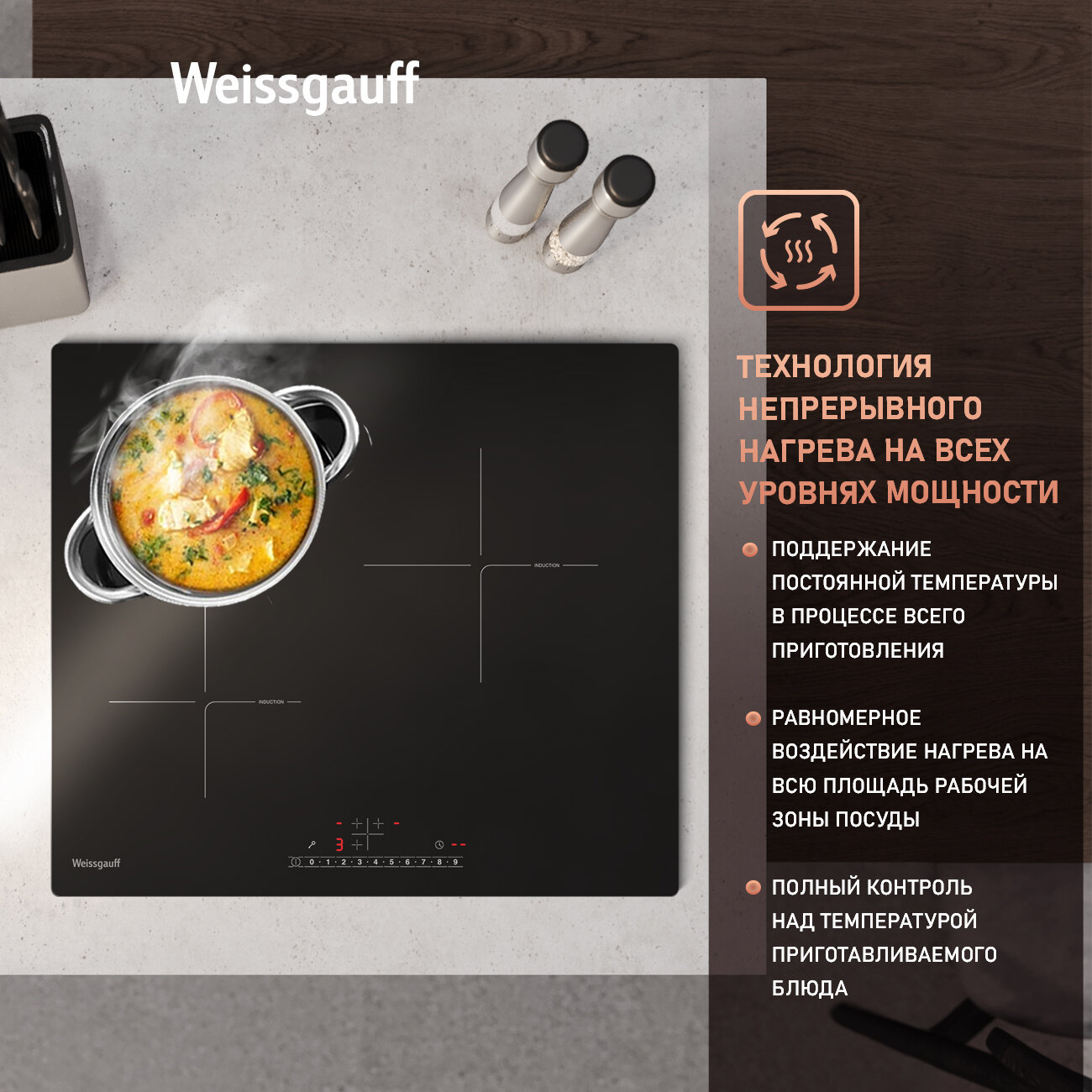 Индукционная варочная панель с инвертором и слайдером Weissgauff HI 630 BSC,3 года гарантии, 3 конфорки, 59 см ширина интересное: