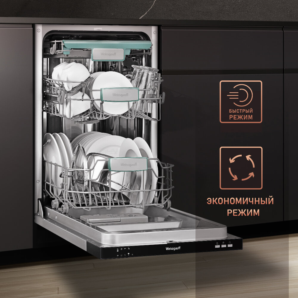 Встраиваемая посудомоечная машина с лучом на полу Weissgauff BDW 4124,3 года гарантии, 3 корзины, 10 комплектов, Электронное управление, Отложенный старт, А++ интересное: