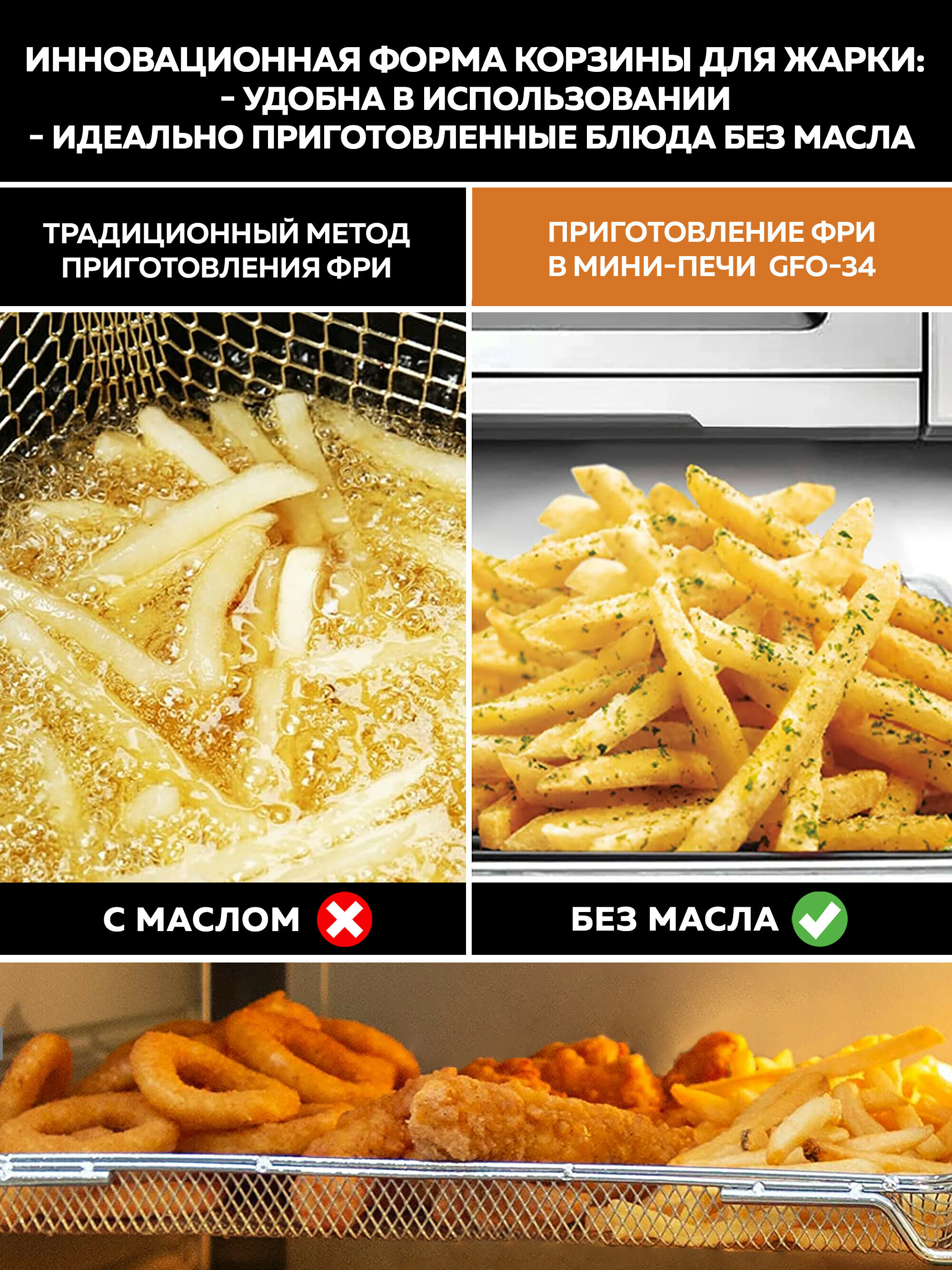 GFGRIL Многофункциональная мини-печь GFO-34, 1 600 Вт, корзина для жарки, мини печь с конвекцией и грилем; духовой шкаф, духовка электрическая