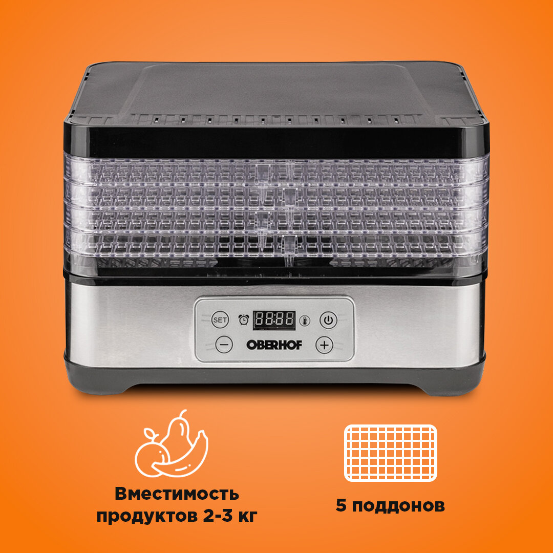 СохранитьДегидратор OBERHOF Fruchttrockner A15, Сушилка овощей, фруктов, мяса, сушилка для грибов, 5 поддонов, 500ВТ интересное:
