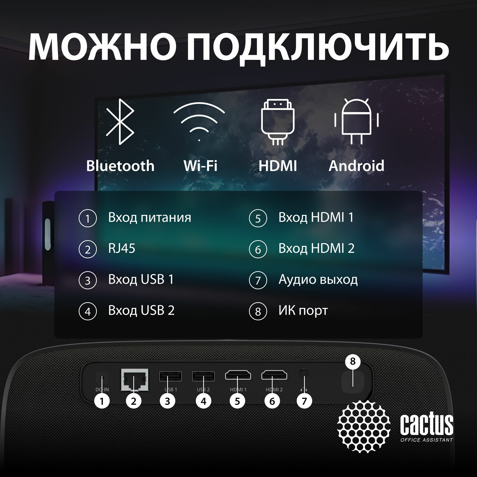 Проектор Cactus CS-PRE.05B.WXGA-A, черный, Wi-Fi