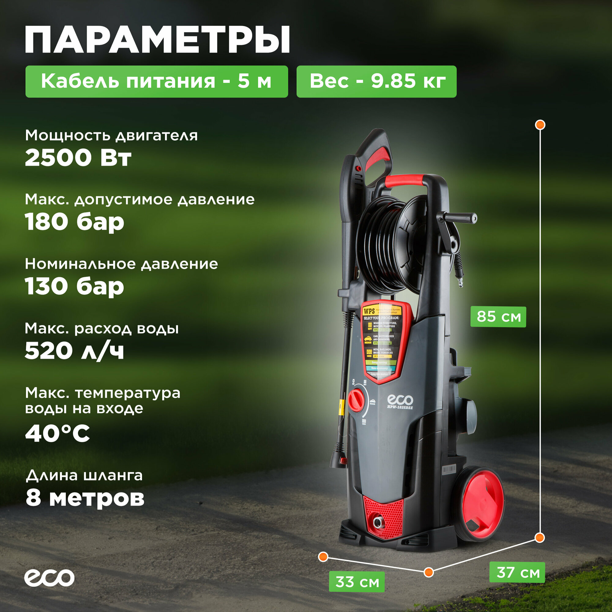 Очиститель высокого давления ECO HPW-1825RSE (2.50 кВт, 180 бар, 520 л/ч, режимы Soft / Medium / Hard, самовсасывание, барабан д/шланга с подключ.) (H