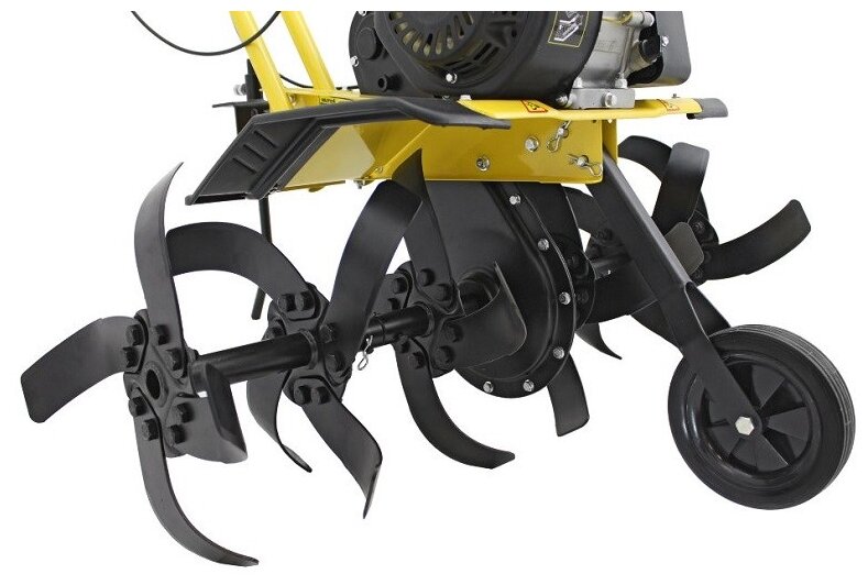Удобный культиватор. Благодаря тому что ширина обработки почти до 1 метра то легко можно работать не только во дворе, а и на других участках земли. Колесо кстати очень страдает если вспахивать сильно влажную землю то забивается землей и слегка проблематично. Щиток защищает от разброса комьев.