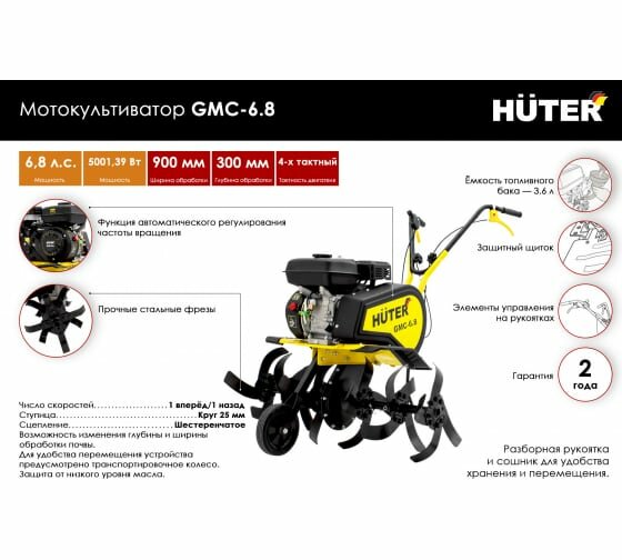 Ниже Вы можете прочитать отзывы на Мотоблок / Мотокультиватор / Культиватор бензиновый HUTER GMC-6.8 (6.8 л.с., четырехтактный, бензин, бак – 3.6 л, ширина – 90 см), ознакомится с подробными характеристиками, посмотреть интересные обзоры и фотографии на Мотоблок / Мотокультиватор / Культиватор бензиновый HUTER GMC-6.8 (6.8 л.с., четырехтактный, бензин, бак – 3.6 л, ширина – 90 см).