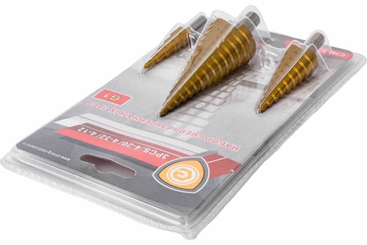 Набор сверл ступенчатых G1, 3 предмета, 4-12 мм; 4-20 мм; 4-32 мм, Strong СTМ-52900003