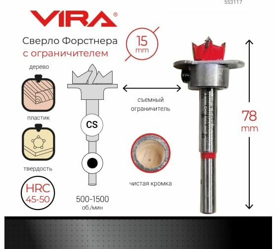 VIRA сверло форстнера 15 мм с ограничителем 553117